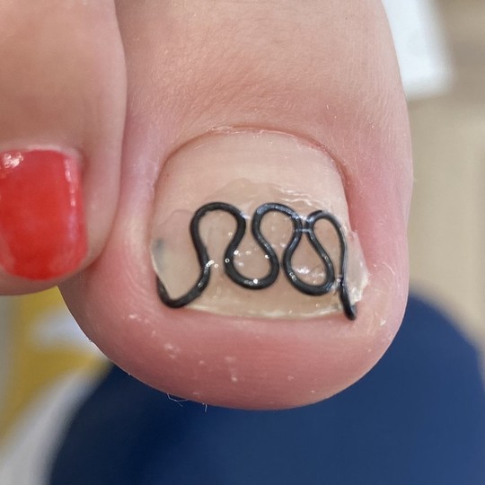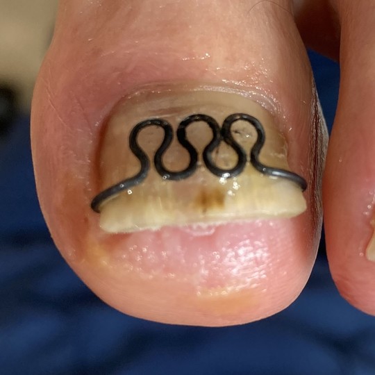 なお、「爪白癬」の疑いが見られる場合は皮膚科を受診するようお伝えしています。爪白癬の疑いがあっても治療中であっても巻き爪矯正は可能ですが、爪がもろくなっているなどの理由で矯正ができない場合がありますのでご了承ください。