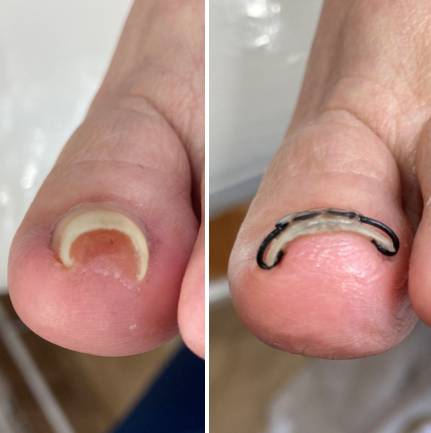 テーピング法は軽度の陥入爪には効果がありますが、巻き爪の痛みは見た目の巻きとは比例しません。爪の厚さ、硬さも関係するので、痛みを感じている場合は早目にしっかり矯正することが大切です。