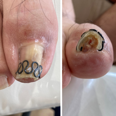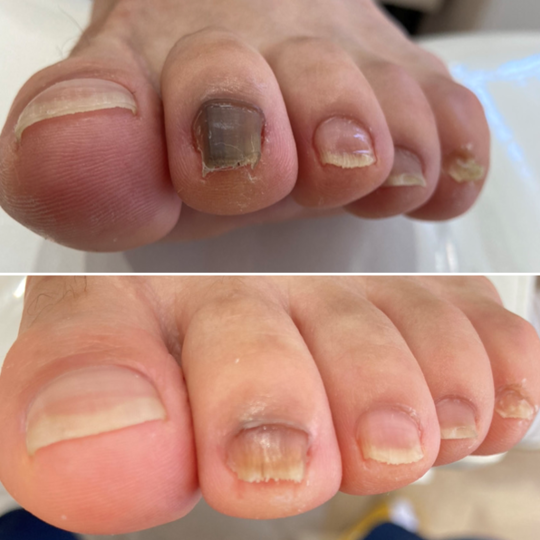 ・上に盛り上がってしまった爪をすべて削り正常な厚みへ