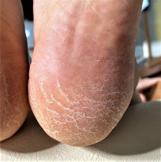 これは乾燥したかかとにホコリや汚れが付着することでさらに乾燥が進み、表面の水分が不足し角質がガサガサになってしまっている状態です。素足にサンダルを履く夏などや、冬でも床暖房を利用されている方は特に注意が必要です。