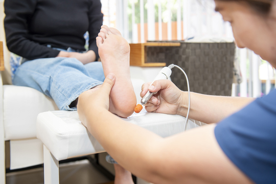 フットケア専用のマシンや器具を使った施術で、不要な角質をしっかり取り除いていきます。
